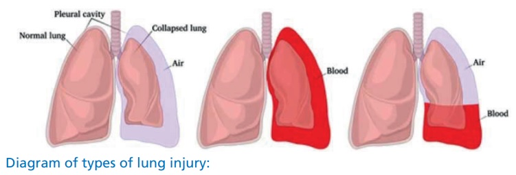Chest and lung injuries usually mean that you feel pain and have difficulty in breathing. You may require oxygen.