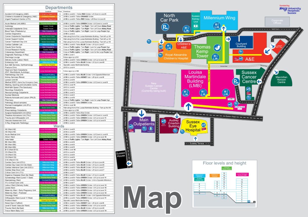 Note:- The accessible entrance on Eastern Road gets you nearer to lifts, Pickford ward and the orthoptics departments. Please note, however, that there is no receptionist on that side of the building, as this entrance is mostly used by admin/doctors where their offices are