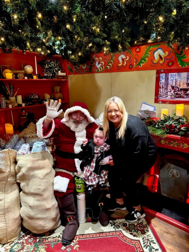 “It’s only been a few weeks, but we’ve been going to ‘Baby College’ which focuses on her development. We’ve even seen Father Christmas – and soon she’ll be crawling.”