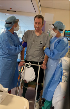 Laurence didn’t stop at fundraising. After attending a follow-up clinic run by Dr Hodgson, he was enrolled into a research study run across Kent, Surrey and Sussex looking at patients who had been critically ill with Covid.
