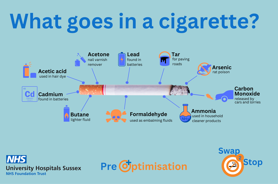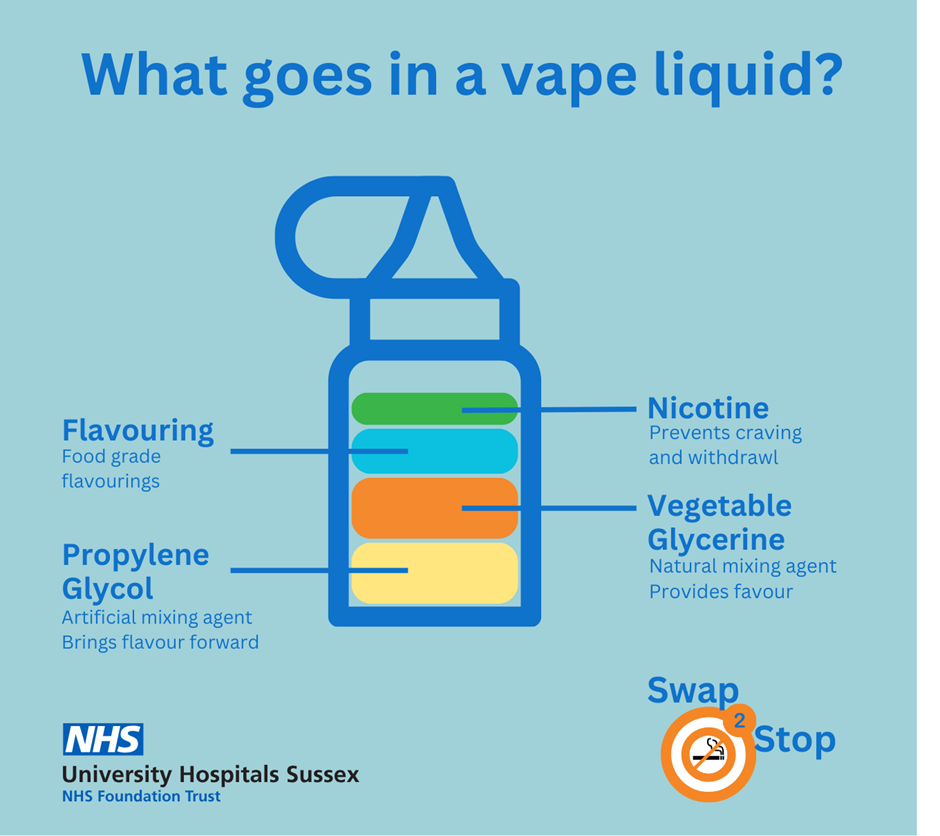 Quitting smoking is the single best thing you can do to improve your health and wellbeing. That’s why at UHSussex, we ask all smokers to make a quit attempt before surgery. Using a vape to help you quit tobacco smoking is now the most popular and effective method to become smokefree. The Swap2stop scheme offers you the chance to be smokefree before surgery by providing you with a free re-usable vape starter kit – including a vape, coils and e-liquid – to make a tobacco quit attempt.