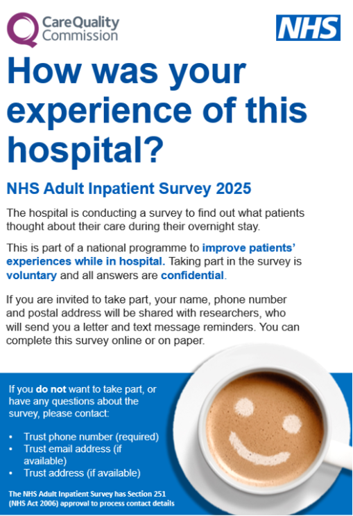 Your input helps us enhance patient safety, experience, and health outcomes, empowering everyone to live healthier lives. This commitment is central to the Trust’s Patient Experience strategy, overseen by the Patient Experience and Engagement Group, with insights reported to senior management.