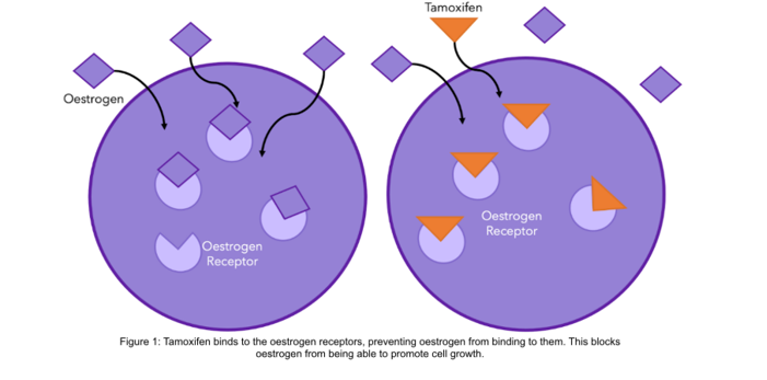 - blocking the oestrogen attaching to the hormone receptors in the breast cells or