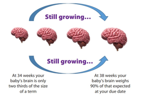 Babies’ brain and lungs continue to develop throughout pregnancy. Early term birth (37 to 39 weeks) may mean a baby’s brain and lungs do not develop as well as if they had been born at or after 39 weeks.