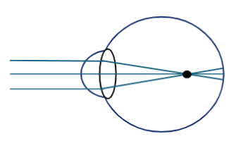 In a myopic eye the light is focussed at a point in front of the retina (Picture B). This means that the light that falls on the retina is blurred.