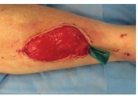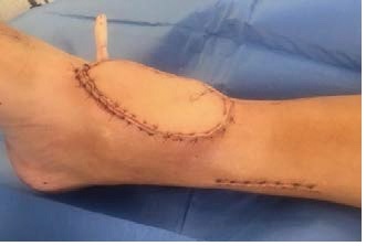 This method uses skin next to the wound, which is partially detached and rotated in order to cover the wound. This often creates a secondary skin defect which requires a simple skin graft, this is performed at the same time.