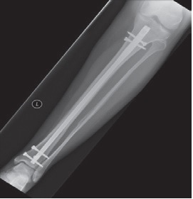 After the debridement is complete, and if the wound can be closed (stitched together), the bone can be fixed together internally (internal fixation).