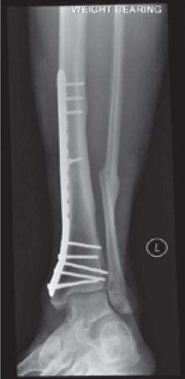 Open fractures almost always need surgery to put the bone back and hold it there while it heals. This can be done in a number of ways. Examples are shown below. Your surgeon will discuss with you what he/she feels is in your best interest.