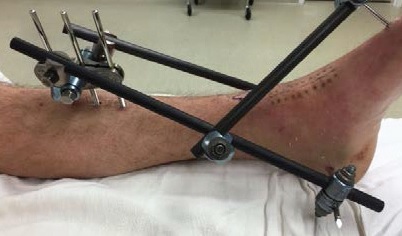 External fixation is when pins or wires into the bone are attached to rings or rods outside the limb. External fixators are used commonly as a temporary measure but can also be used as the final treatment and removed once the bone has healed.