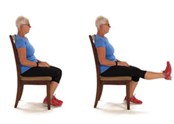 2. “Marching” your legs while you are sitting. Lift your knees up and down. Do this at least five times each side.