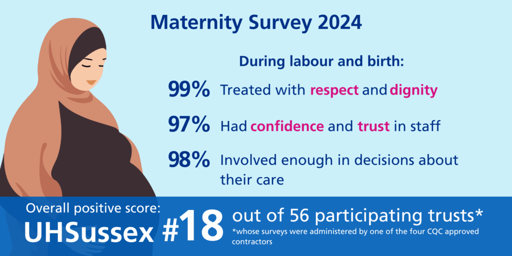 And, in another national maternity survey, UHSussex ranked in the top twenty trusts for its overall positive score.